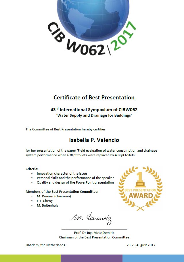 The symposium will be held from 23th untill 25th of August 2017 in the city of Haarlem near Amsterdam. The symposium is open to all experts, researchers and practitioners of the regulators and industries from all over the world who are interested in the development of building water supply and drainage. The 43rd international Symposium of CIB W062 Water Supply and Drainage for Buildings warmly welcomes representatives from Europe, America, Africa, Asia and Oceania.